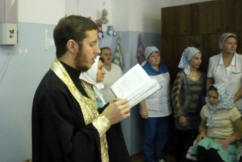 НОВОТРОИЦК. 30 ноября 2012г. В преддверии Международного дня инвалидов настоятель храма святого апостола Андрея Первозванного с. Хабарного иерей Евгений Селивёрстов посетил Новотроицкий психоневрологический интернат.