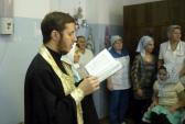 Встретили батюшку с радостью. Как отмечают сами врачи, в день прихода священника поведение больных становится спокойнее и лучше. Для болящих и сотрудников больницы был совершён молебен о здравии. После молебствия отец Евгений окропил святой водой палаты, коридоры и служебные помещения. Больные встречали батюшку с улыбками и просили, чтобы и их тоже окропили святой водой. Отец Евгений отвечал на вопросы и раздавал желающим нательные крестики. Также священник побеседовал с медперсоналом и пожелал врачам помощи Божией в их нелёгкой и ответственной работе.