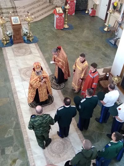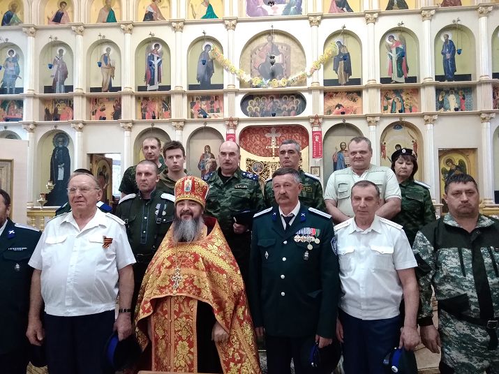 Накануне дня небесного покровителя казачества казаки Кувандыкского станичного казачьего общества собрались в храме на богослужение. Протоиерей Симеон Антипов поздравил присутствующих с днем памяти вмч. и Победоносца Георгия и 445-летием основания Оренбургского казачьего войска, пожелал быть достойными своего великого и славного покровителя.