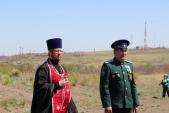 По сложившейся традиции, после праздничной Божественной литургии, мероприятие началось с торжественного построения казаков. После приветственных слов атамана Новотроицкого хуторского казачьего общества Юрия Алексеевича Жердева, настоятель храма святого апостола Андрея Первозванного иерей Евгений Селиверстов совершил литию.