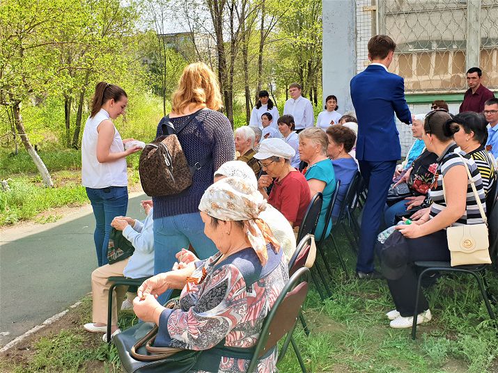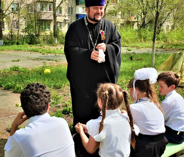 НОВОТРОИЦК. 9 мая 2019 г. Молодёжный актив Орской епархии во главе с руководителем отдела иереем Андреем Пелипенко принял участие в празднике «Радость Великой Победы», организованном для людей с ограниченными возможностями из «Центра адаптивного спорта» и поздравили всех с пасхальными днями.