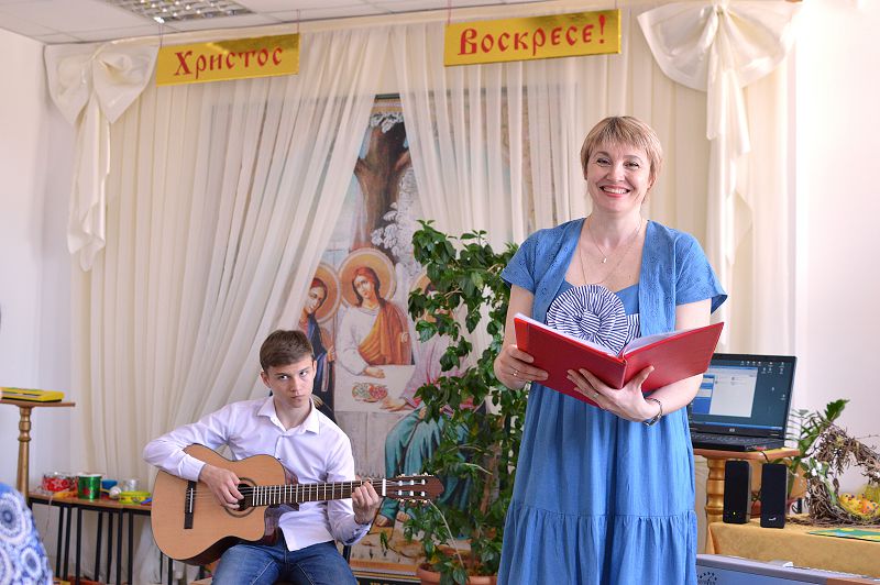 В начале мероприятия ведущая, преподаватель воскресной школы по пению Елена Портман, простым и понятным языком рассказала ребятам и гостям, кто такие святые жены-мироносицы и почему Русская Православная Церковь чтит их память в третье воскресенье после Пасхи.