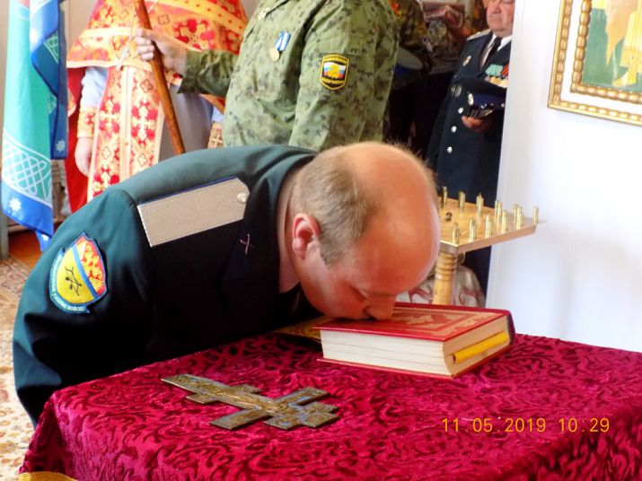 И вот настал момент торжественной клятвы! Её в тот день произнесли супружеские пары Алексей и Анна Воробъёвы, Григорий и Наталья Безбородовы, а также Алексей Карпунин. По традиции после самой присяги казак целовал крест и Евангелие, знамя Оренбургского казачьего войска, а также шашку, которой атаман Пётр Степанов в знак посвящения в казаки «верстал» новичка (то есть возлагал шашку на его плечо).