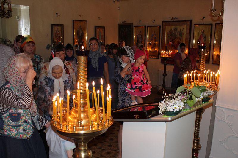 Отец Виталий благословил присутствующих, а воспитанники воскресной группы вручили прихожанкам в память о празднуемом событии подарки, сделанные своими руками. Состоялась и традиционная праздничная трапеза, на которую были приглашены все желающие. В светлой и дружной обстановке, за щедро накрытым столом, священник поздравил прихожанок, а женщины с радостью исполняли песни и стихи. Затем прихожанки храма посетили на дому двенадцать верующих женщин пожилого возраста, праздничным тропарём и подарками поздравили милых бабушек с православным женским днём.