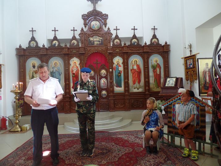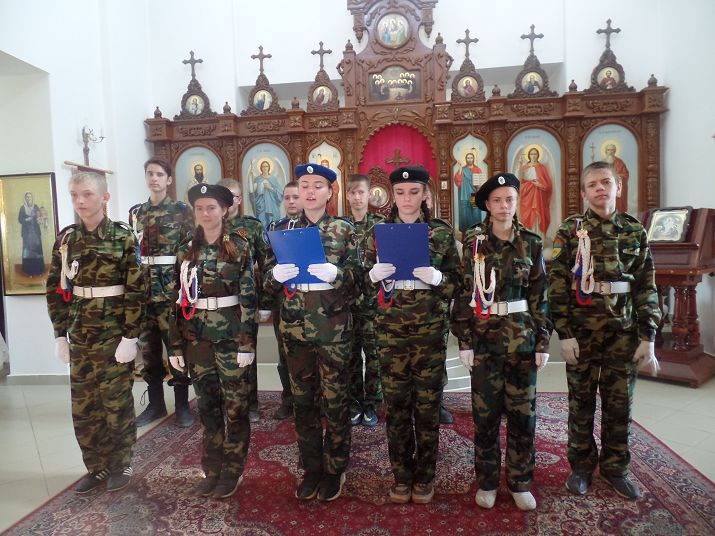 После выступления кадетов атаман Новотроицкого хуторского казачьего общества Юрий Алексеевич Жердев передал благодарственную грамоту настоятелю храма иерею Евгению Селиверстову от Первого отдела Оренбургского казачьего войска за усердие в деле возрождения казачьих традиций и военно-патриотического воспитания молодёжи.