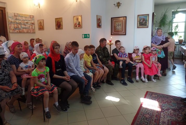 Ученики воскресной школы показали костюмированное представление, в котором звучали песни и стихи, прославляющие светлый праздник Пасхи. Ребята и их родители, бабушки и дедушки вместе играли, разгадывали загадки, делились друг с другом радостью о Воскресшем Христе. Заключительной частью утренника стало чаепитие.