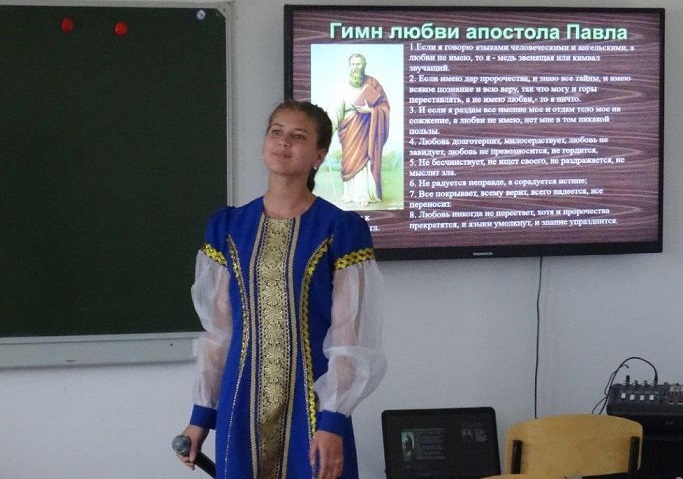 Студентка Торгово-технологического техникума Яна Беляева, одетая в традиционный русский костюм, открыла музыкальную часть встречи задорной народной песней «Вишня». А затем была программа, состоящая из стихов, музыки и песен под гитару. Свои стихи, прочитали Людмила Горшенина, Марина Лучшева, Юрий Лифшиц и Лариса Бандуренко. А песнями порадовали в этот вечер представительница клуба «Белая ворона» Валентина Кузьмина, работник храма Елена Головина, а также семейный дуэт Александра и Ольги Ивановых. Студент колледжа искусств Антон Лучшев исполнил на гитаре «Вальс» А. Иванова-Крамского.