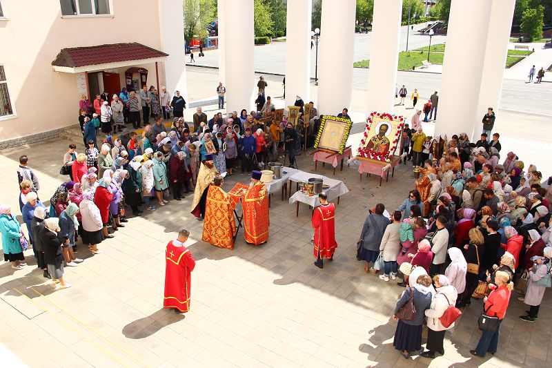 День перенесения мощей святителя Николая, архиепископа Мир Ликийского, Чудотворца является престольным праздником для двух православных храмов города Медногорска. После Божественной литургии оба прихода с большими храмовыми иконами святителя Николая Чудотворца и с пением молитв выдвинулись крестным ходом навстречу друг другу.