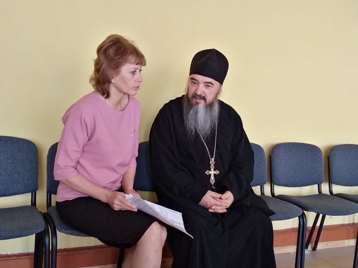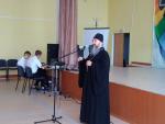 Во время одного из уроков в актовый зал для беседы со священником собрались учащиеся 11-го и 9-го классов. По приглашению директора школы Елены Ивановны Булгаковой протоиерей Симеон Антипов провел увлекательную беседу и ответил на вопросы школьников.