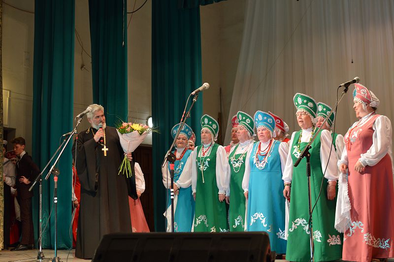 От лица епископа Орского и Гайского Иринея протоиерей Вячеслав Кочкин поздравил хор народной песни с Днем славянской письменности и культуры, поблагодарил его за возможность слышать песни не только со сцены ДК, но и в духовно-просветительских центрах приходов Орской епархии, а также выразил надежду на дальнейшее сотрудничество.