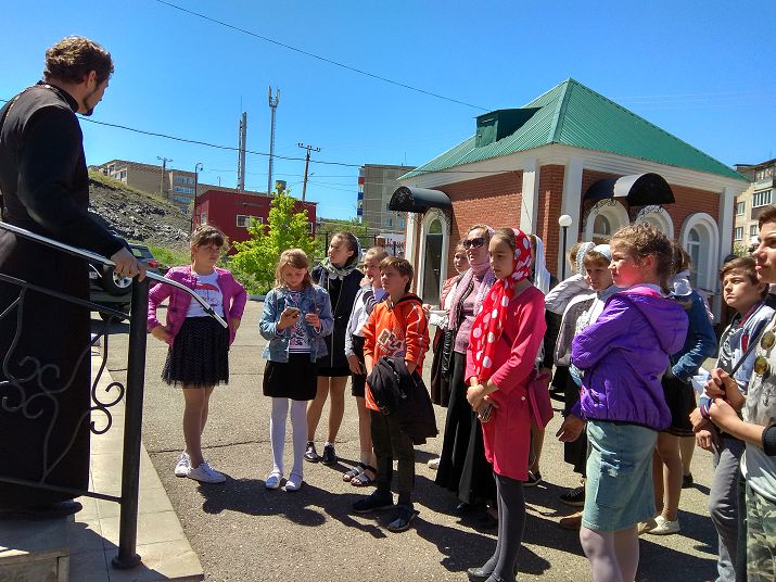 После экскурсии по храму, чаепития и визита в воскресную школу, паломники отправились в новый храм Николая Чудотворца к настоятелю священнику Максиму Малюте, где всех уже ждали на трапезу. Отец Максим рассказал детям о храме и иконах, о работе молодежного клуба и традициях прихода. Покидая гостеприимный Медногорск, договорились проводить совместные мероприятия с воскресными школами Кувандыка и Медногорска.