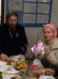 Праздник продолжился за чаепитием, во время трапезы священники вместе с прихожанами и гостями пели русские песни и рассказывали стихи.