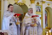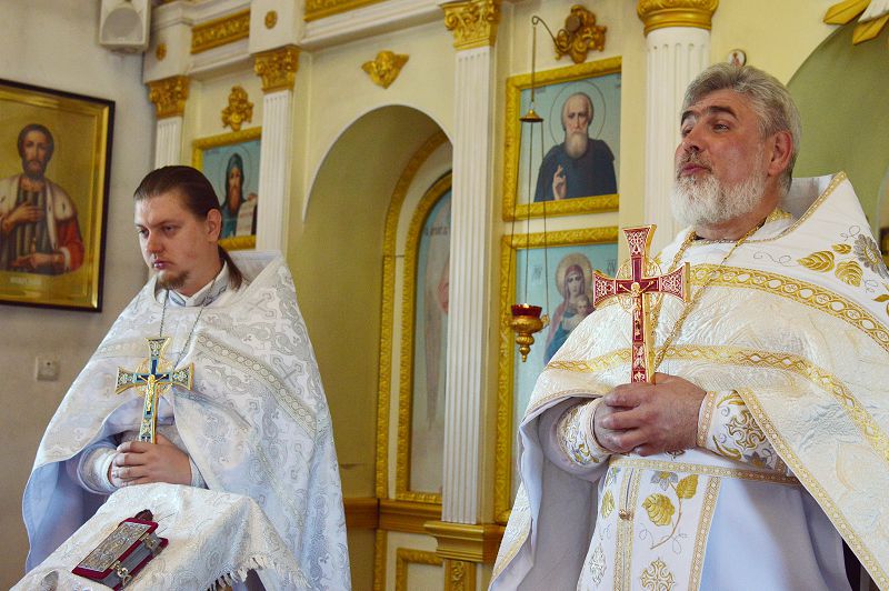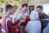 Несмотря на будний день, храм был полон верующими. Молитвенно разделить радость празднества пришли не только прихожане, но и гости храма. В этот день Причастие Святых Христовых Таин совершалось из двух Чаш, среди причастников было много детей и молодежи.