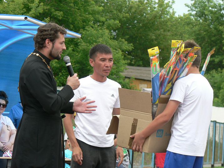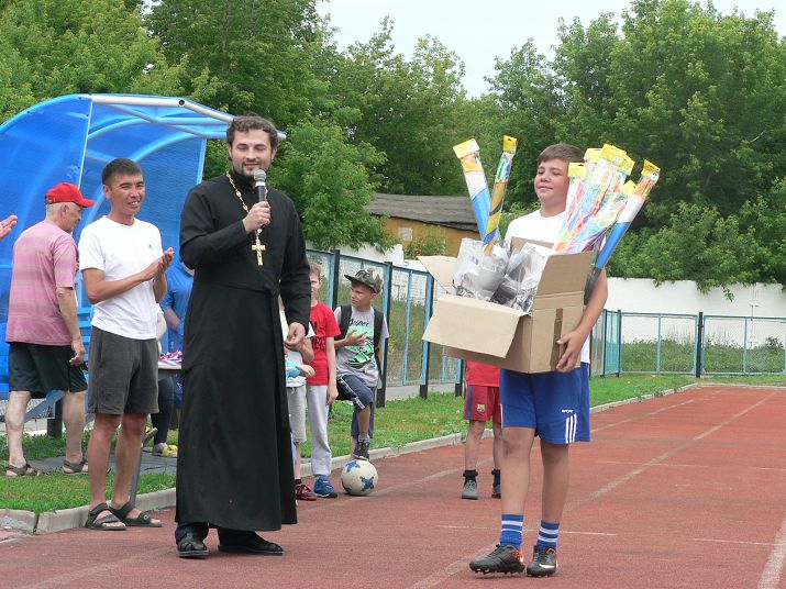 МЕДНОГОРСК. 19 июня 2019 г. Благочинный Медногорского округа иерей Максим Малюта принял участие в награждении детских футбольных команд, участвующих в футбольном турнире среди дворовых команд.