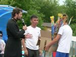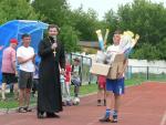 Иерей Максим Малюта, в свою очередь, также поздравил участников турнира и вручил небольшие подарки членам команды от микрорайона Машиностроителей, которые не заняли призовое место, но проявили себя как дружная и выносливая команда. Священник вместе с другими почетными гостями принял участие в церемонии награждения участников турнира, занявших призовые места.