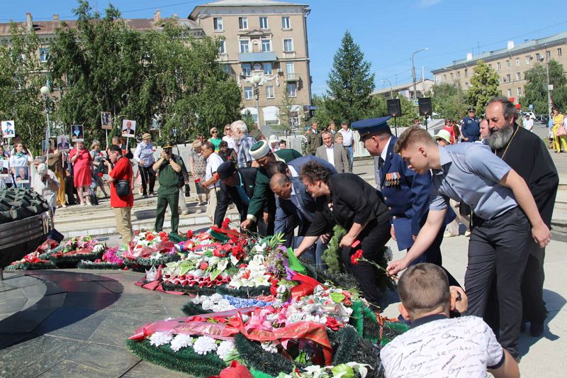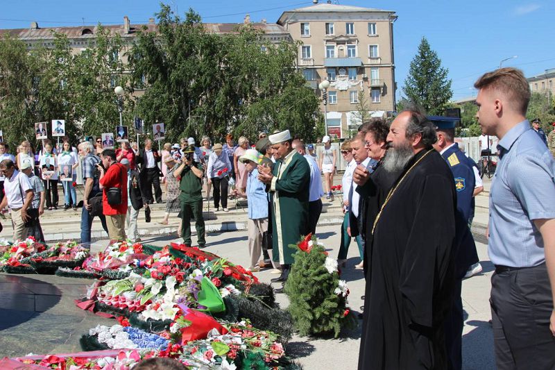 ОРСК. 22 июня 2019 г. В день 78-й годовщины начала Великой Отечественной войны настоятель Свято-Георгиевского кафедрального собора протоиерей Александр Куцов, клирики кафедрального собора и духовенство Орской епархии совершили раннюю Божественную литургию и панихиду по погибшим воинам.