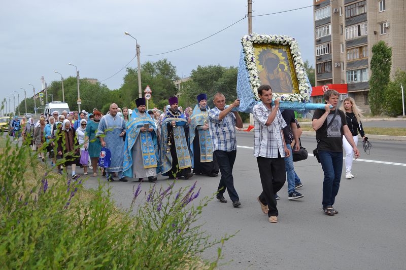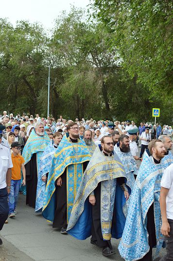 Орск. В этот знаменательный день благочинный Орского округа протоиерей Александр Куцов, клирики Свято-Георгиевского кафедрального собора и клирик Михаило-Архангельского храма священник Сергий Новиков совершили Божественную литургию. По окончании богослужения празднично украшенную икону, кресты, хоругви вынесли на улицу и традиционно направились крестным ходом по установленному маршруту. Шествие по городу сопровождали сотрудники ДПС и казаки Орского городского казачьего общества.