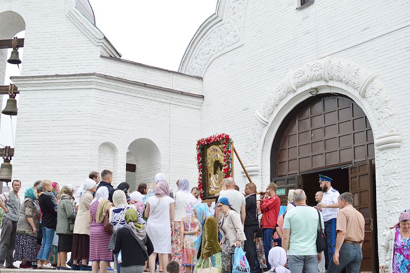 Крестоходцы прошли по центральным улицам города и вернулись обратно к кафедральному собору. По окончании шествия был отслужен праздничный молебен Богородице перед Ее Табынской иконой. Затем отец Александр Куцов поздравил молящихся с праздником и напомнил, что «крестными ходами будет спасена Россия». В конце службы под колокольный перезвон каждый присутствующий приложился к иконе Божией Матери «Табынская» и прошел под ней. Завершился праздник трапезой – во дворе Свято-Георгиевского собора всем желающим были предложены горячий чай, компот и сладкое угощение.