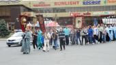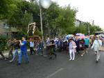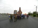 Кувандык. Крестный ход шел от храма Покрова Пресвятой Богородицы по улицам города, совершив круг и снова вернувшись к храму, по пути было сделано три остановки и четвертая у храма, на которых священники и участники крестного хода пели по три кондака и икоса из акафиста Божией Матери перед Ее Табынской иконой. Пятница – рабочий день, поэтому по ходу шествия к нему присоединялись и затем возвращались на работу верующие со всего города. Всего в крестном ходе в Кувандыке приняли участие около двухсот пятидесяти человек. Было много молодежи и детей всех возрастов, некоторые бабушки приводили всех своих внуков, приходили даже люди других вероисповеданий. Прохладная погода поспособствовала тому, что даже самые пожилые и немощные смогли осилить крестный ход!