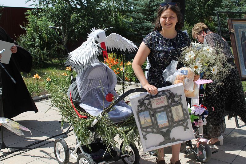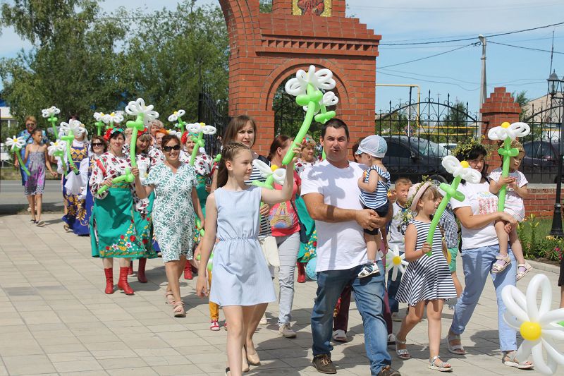 Все началось с молитвы. По окончании Божественной литургии настоятель храма протоиерей Вячеслав Кочкин совершил молебен о семейном благополучии святым благоверным князю Петру и княгини Февронии Муромским. Затем начался праздничный концерт, подготовленный самодеятельными коллективами районного дома культуры «Целинник». К храму люди пришли в национальных костюмах, с украшенными колясками.
