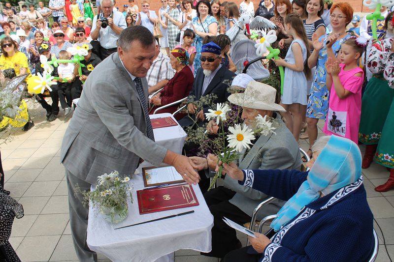 Много теплых слов было сказано в адрес юбиляров, создавших свои семьи 60 лет назад – семьи Капитона Васильевича и Валентины Лукьяновны Ефремовых, семьи Александра Ивановича и Татьяны Степановны Сардиных, семьи Урмантая и Марии Жулдаспаевны Букаевых. Начальник отдела загса администрации Адамовского района Ирина Реброва провела торжественную регистрацию 60-летнего юбилея их совместной жизни. Также были подведены итоги районного конкурса «Семья года», регионального этапа Всероссийского конкурса «Семья года». Призами были награждены семьи района, занимающие активную жизненную позицию и пропагандирующие здоровый образ жизни. Протоиерей Вячеслав Кочкин подарил желающим экземпляры Святого Евангелия от издательства «Сибирская благозвонница» и книги профессора МДАиС Алексея Осипова.