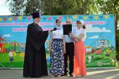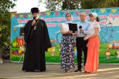 ОРСК. 8 июля 2019 г. В день благоверных князей Петра и Февронии, Муромских чудотворцев, руководитель епархиального отдела по церковной благотворительности и социальному служению протоиерей Вячеслав Кочкин в сопровождении певчих Пантелеимоновского храма посетил городское мероприятие, посвященное Дню семьи, любви и верности.