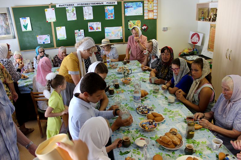 Общение продолжилось за совместной трапезой. Все остались очень довольны, каждый унес с собой особое светлое летнее настроение, радость престольного торжества, чтобы непременно разделить ее с близкими.