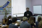 МЕДНОГОРСК. 24 октября 2014 г. В храме святителя Николая Чудотворца г. Медногорска п.Заречного состоялась встреча настоятеля храма - иерея Андрея Пелипенко - с учащимися одиннадцатого класса СОШ №7 г. Медногорска.