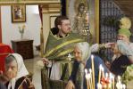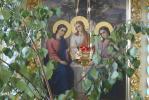 Храм красиво украшен красавицами берёзками, цветами, свежескошенной травой. Теплятся в зелени лампадки, золотом мерцают свечи, лики икон в берёзках, словно живые, взирают с любовью на молящихся. Воздух наполнен березовым духом, ароматов цветов и ладана. Прихожане нарядно одеты, с цветами и веточками берез.
