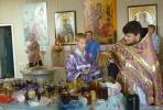 Верующие приносили плоды для освящения. Нарядно и празднично выглядели столы, уставленные корзинами, блюдами, полных яблок, груш, винограда, виктории и другими плодами, выращенными руками прихожан нашего храма. После Литургии, которую совершил благочинный Медногорского округа, настоятель храма протоиерей Симеон Антипов, состоялся водосвятный...