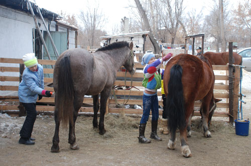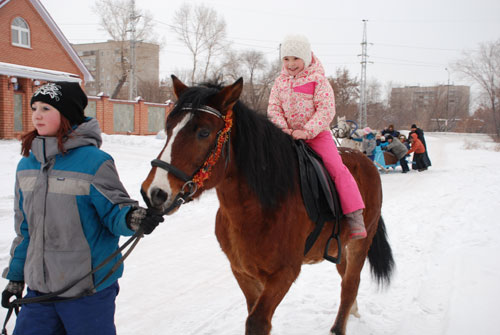 Лошадки из клуба часто радуют взрослых и ребятишек всего города: принимают участие в приходских праздниках, катают на зимних санках, исполняют роли в театрализованных уроках-играх, которые проводятся для учащихся воскресных школ Орской епархии.