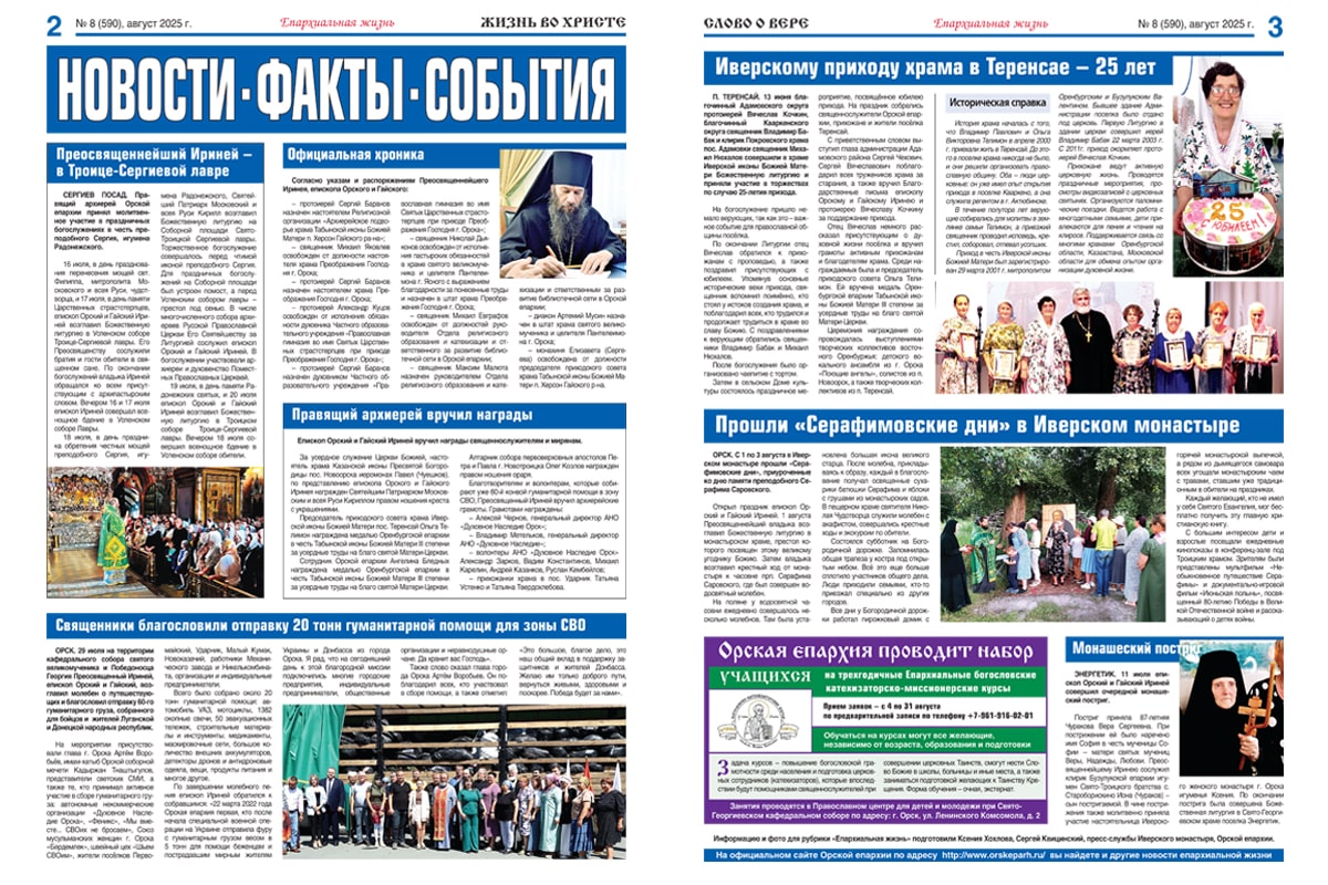 ОРСК. 12 августа 2025 г. Вышел в свет 8-й (590) номер газеты «Жизнь во Христе – слово о вере». Представляем вашему вниманию его краткий обзор.