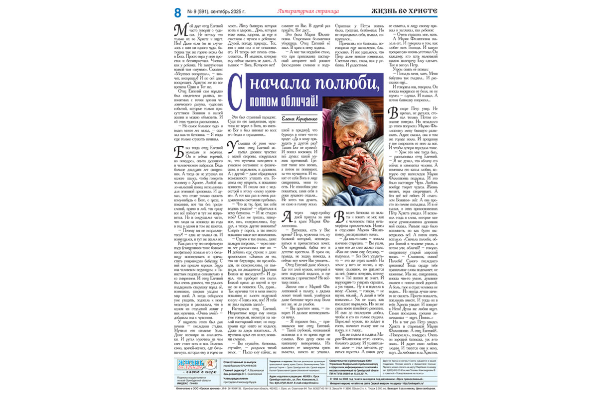 ОРСК. 16 сентября 2025 г. Вышел в свет 9-й (591) номер газеты «Жизнь во Христе – слово о вере». Представляем вашему вниманию его краткий обзор.